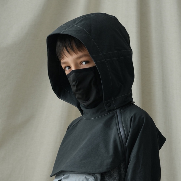 + 帽子延續軟殼夾克的三片式立體帽型,服貼頭型