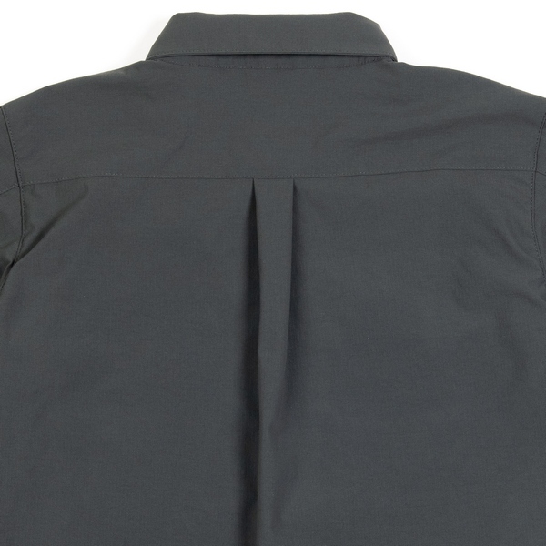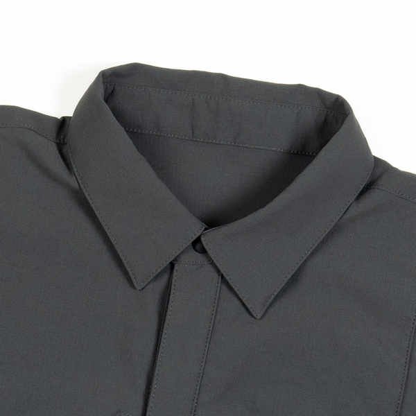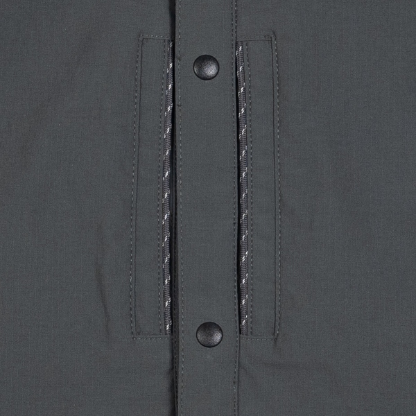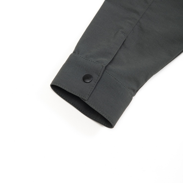 襯衫採用尼龍抗撕裂布料製成,添加不含氟化物的防潑水劑,耐磨耐髒的特性,