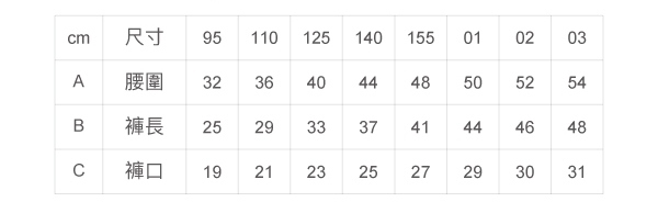 *此為建議尺寸表,可對照身高體重挑選我們建議的合適尺寸。