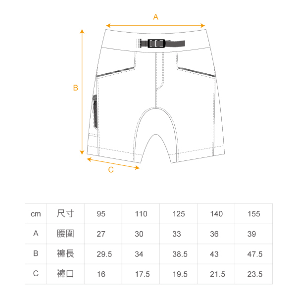 注意:95~110尺寸為無拉鍊設計,125~155尺寸為有拉鍊設計。腰頭釦環為不同款式。